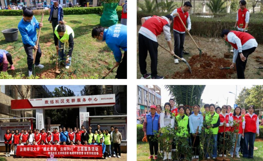 3月11日,在第45个植树节来临之际,地理学部团委联合文学院团委、体育学院团委组织30余名学生志愿者走进呈贡区致远社区,开展以“植此青绿,云师同行”为主题的植树节志愿服务活动。在社区园艺师的指导下,志愿者们按照规范认真完成松土、培土、浇水等各项工序,并为树苗填写认养卡,详细记录种植信息,确保每一株树苗后续管理有据可依、持续养护。活动特别设置“雷锋志愿岗”,由志愿者担任“生态讲解员”,学部志愿者结合专业所学,面向社区居民科普城市绿化在调节气候、水土保持等方面的重要作用,传播生态文明理念,为社区生态建设注入青春活力。此次活动不仅让同学们在实践中践行雷锋精神,也引导广大青年以实际行动助力绿色发展,用青春为美丽中国建设增添一抹新绿。